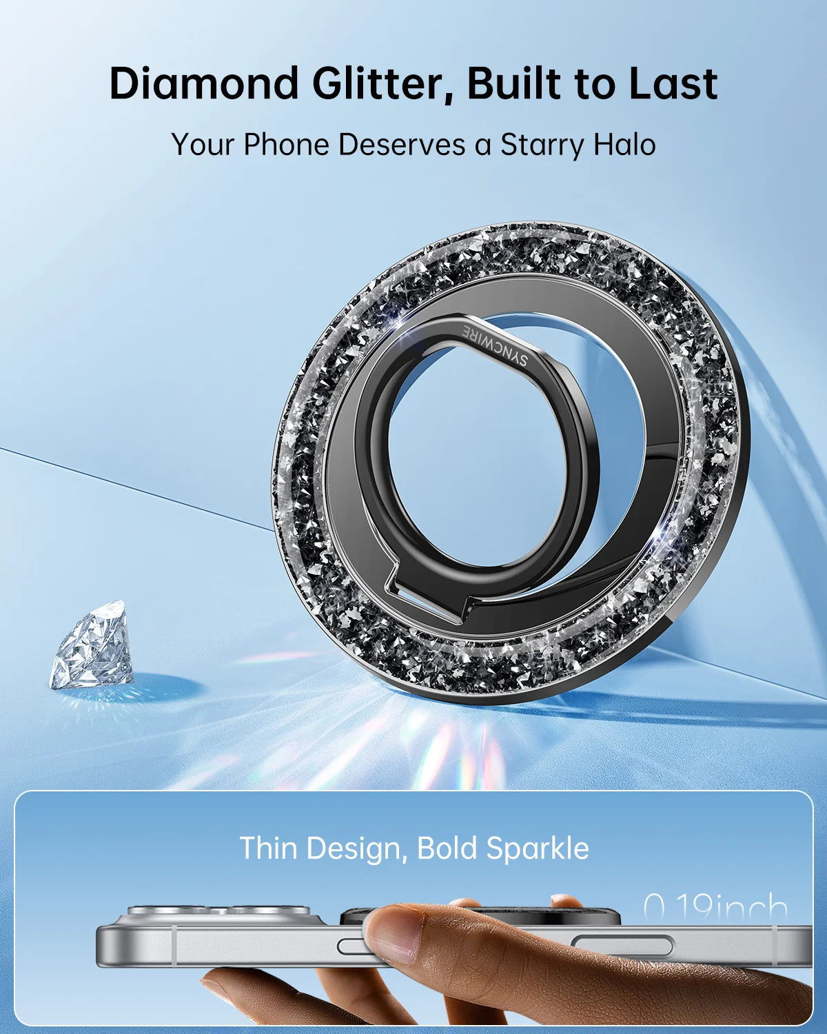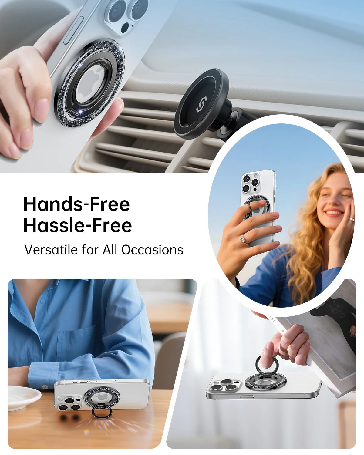 - Agarre magnético para teléfono con purpurina: El soporte magnético para teléfono con anillo Syncwire Glitter combina a la perfección moda y funcionalidad. Con un diseño magnético, se acopla perfectamente a fundas compatibles con MagSafe, garantizando que tu teléfono se mantenga seguro en la mano. Su brillo es llamativo y añade un toque de lujo al uso diario. Es un regalo ideal para tu esposa, hija, madre, tía, familia, novia, amigas o para ti mismo.