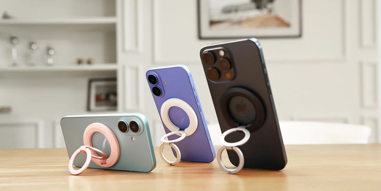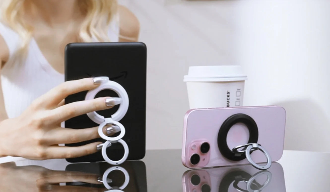 El paquete incluye el agarre magnético para teléfono, dos anillos MagSafe de metal, un posicionador, un manual de usuario y una garantía de 12+24 meses.