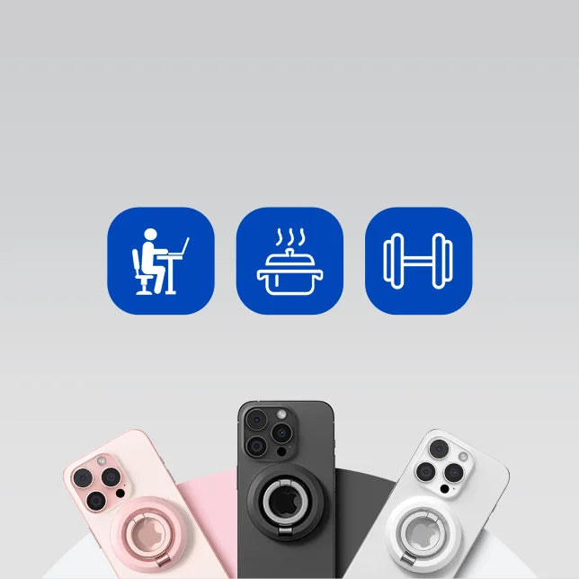 • Conveniente y portátil: El agarre de anillo para teléfono elimina la necesidad de soportes adicionales, admite varios ángulos para uso en escritorios o en el piso y es ideal para trabajar en la oficina, ver medios y crear contenido.