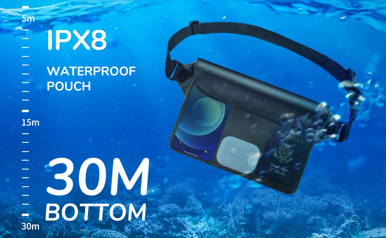 - Lo que obtienes: 1 Riñonera impermeable Syncwire negra y 1 Riñonera impermeable Syncwire blanca. Te acompañarán en una agradable escapada a la playa.