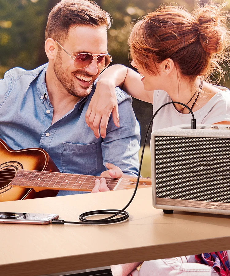 • Compatibilidad universalPerfectamente compatible con cualquier dispositivo con puerto auxiliar de 3,5 mm, como iPhone, iPod, iPad, auriculares, equipos de música, estéreos de coche, tabletas, portátiles, smartphones, reproductores MP3, altavoces y cualquier otro dispositivo de reproducción de audio. (ATENCIÓN: Incompatible con fundas Lifeproof y Otter Box).